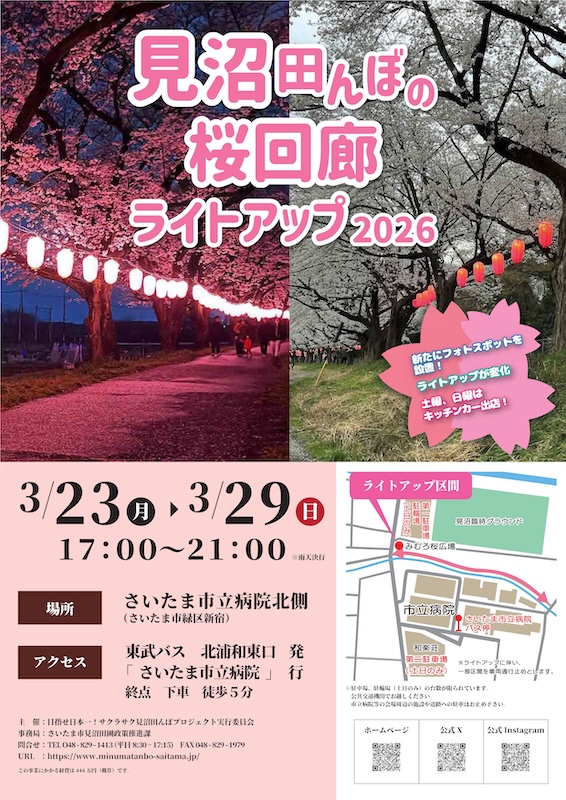 「見沼田んぼの桜回廊 ライトアップ2026」を開催します