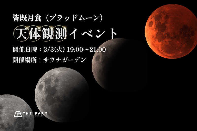 【皆既月食(ブラッドムーン)×冬のサウナ】3/3(火)の夜、サウナガーデンで天体観測イベントを開催|おふろcaféかりんの湯【千葉県】
