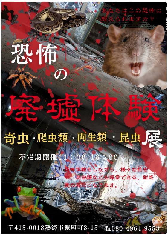 【業界初!?】静岡県熱海市に「廃墟動物園」が誕生!懐中電灯一つで夜行性生物の生態に迫る、恐怖と発見の新感覚エキゾチック・アニマル展示が期間限定オープン