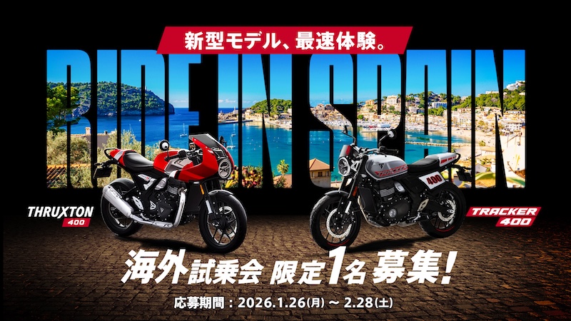 世界中のライダー達とともに、誰よりも早く!新型「THRUXTON 400 / TRACKER 400」に乗れるチャンス!