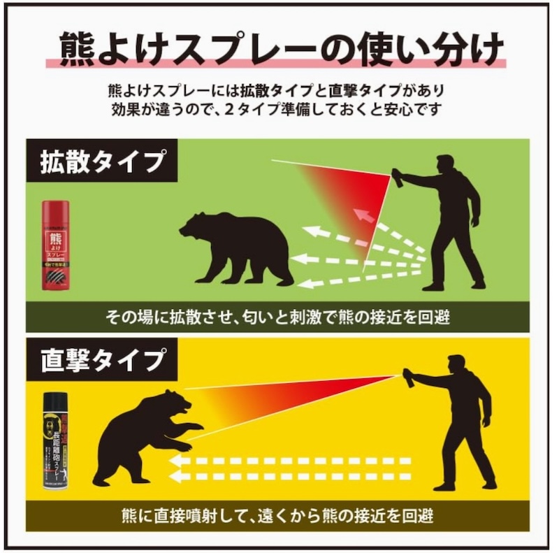 【熊被害から身を守る】高濃度カプサイシン2%配合「熊よけスプレー」に、遠距離から身を守る「直撃タイプ」が新登場!