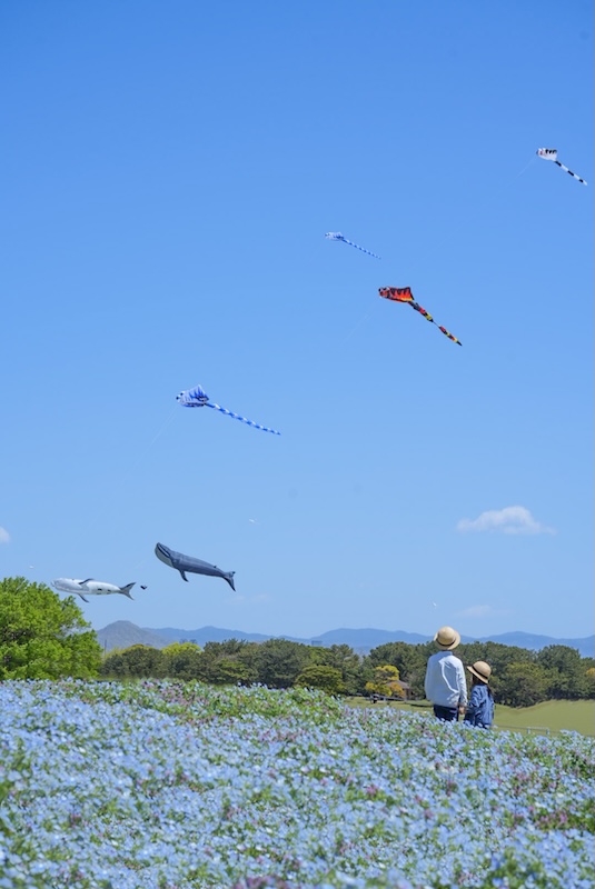 国営海の中道海浜公園(福岡県福岡市東区)では、4/12(土)・13(日)に「うみなか凧揚げフェスティバル」を開催します。今回初飛行となる全長50mの巨大クジラをはじめ様々な形のバルーンカイトが、ネモフィラの青い花の海の上を悠然と泳ぐ光景をご覧いただけます。親子連れに人気の“凧作りワークショップ”も同時開催。子どもが笑顔で揚げるカラフルなオリジナル凧と、巨大クジラが競演するシーンも見逃せません。