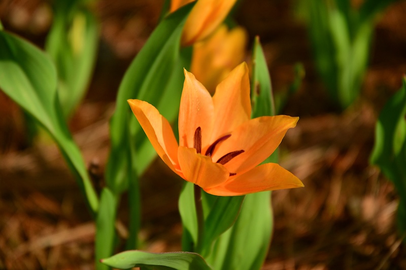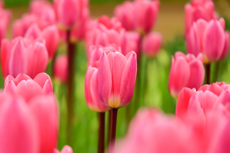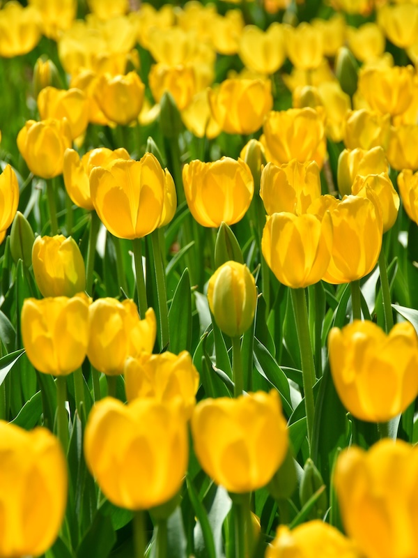 背丈が低いため、背の高いチューリップと組み合わせることで、立体感と奥行きのある花畑を作り出しています。