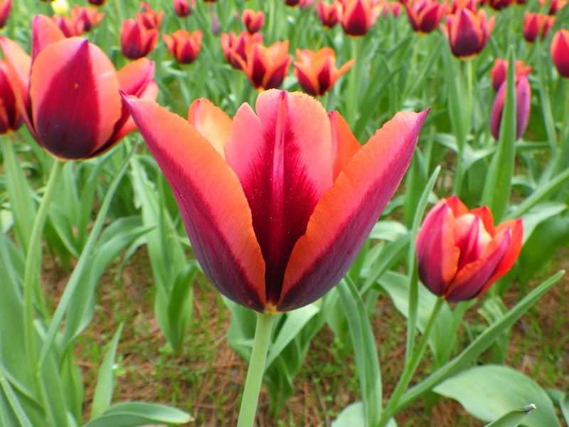 かわいらしいチューリップが多く咲く中で、「スラヴァ」は凛としたかっこよさが魅力の品種です。球根数はそれほど多くありませんが、花畑のアクセントとして、いくつかのエリアに配置しています。