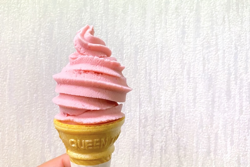 芝桜をイメージした、いちご味のソフトクリームを期間限定で販売します。