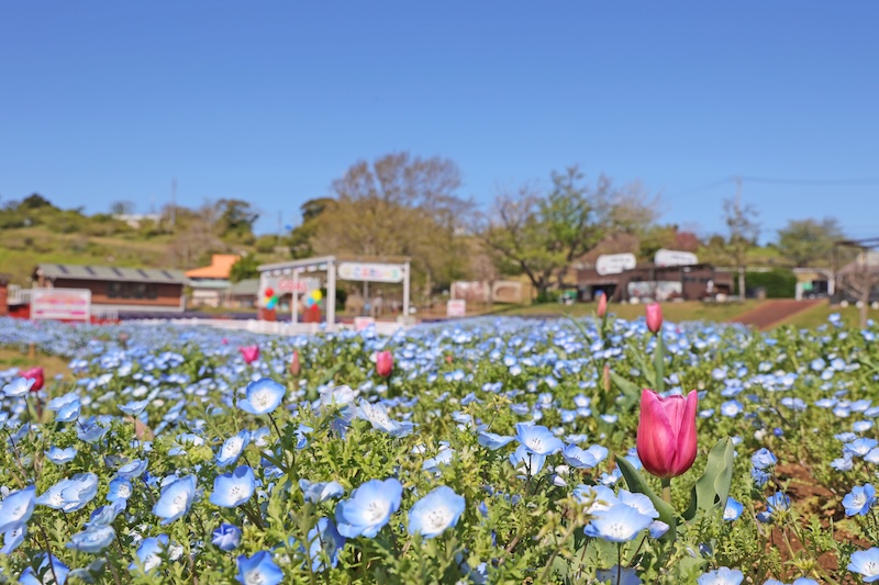 また、メインエリアの横にある「まきばのひろば」ではメインエリア「花の谷」よりひとあし早くネモフィラが見頃を迎えています。