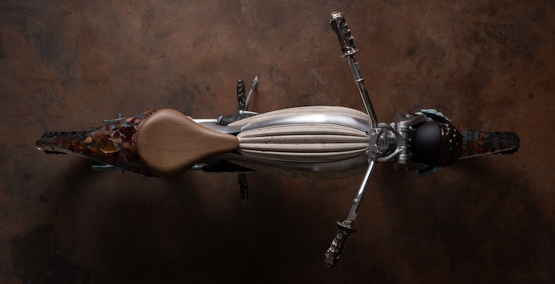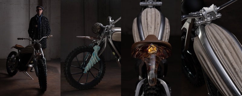 - FLYING FLEAのFF.C6モデルをベースに自然素材を巧みに取り入れ、鍛造アルミニウムフレームやガーダーフォーク、マグネシウム製バッテリーケースなどのパーツを再構築