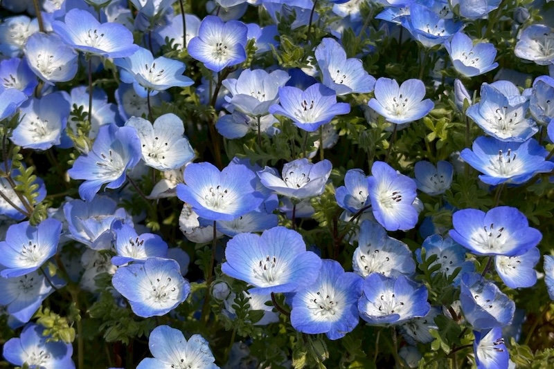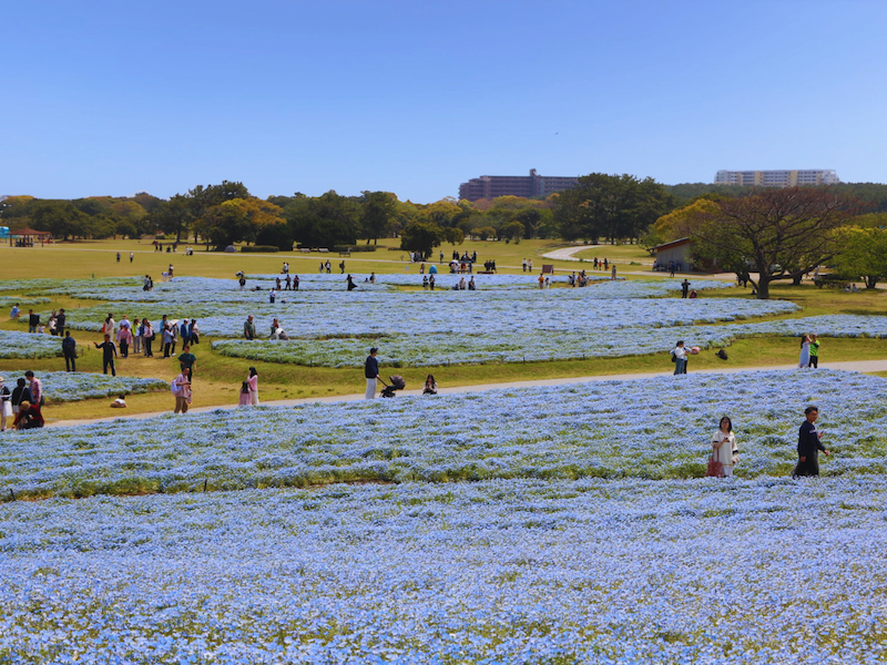 海の中道海浜公園では、花の祭典「海の中道フラワーピクニック2025」を開催中です。園内の花の丘では、春一番人気の青い花、“ネモフィラ”が満開を迎えました。丘の上から見下ろせば花の海が広がるかのようで、裾野から見上げれば花と空の青が溶け合うという、どこから見ても青一色の絶景となっています。