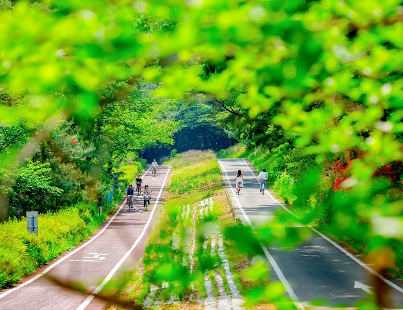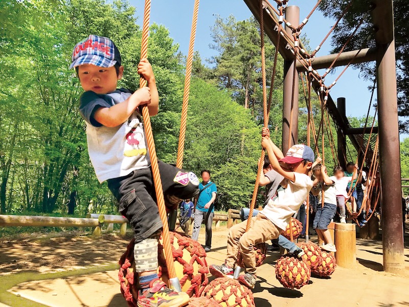 東京ドーム65個分もの広さを誇る園内には、日本最大級のエアートランポリン「ぽんぽこマウンテン」やアスレチックコースなど、家族で体を思いっきり動かして遊べる遊具がたくさんあります。また、都市緑化植物園では、四季折々の風景や木々、草花もお楽しみいただけます。