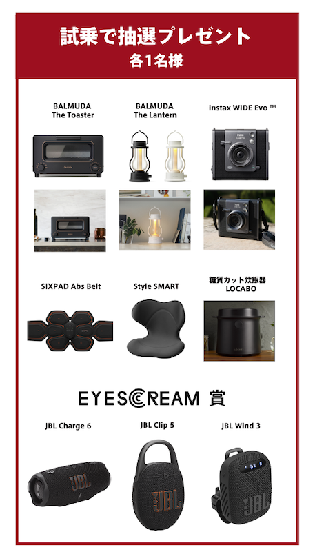さらに、記事公開を記念して、実施中の「FEEL THE TRIUMPH 400」キャンペーンで、期間中に全国のトライアンフ正規販売店でご試乗いただいた方の中から抽選で当たる豪華プレゼントに、EYESCREAM賞として、アウトドアでも使えるJBLのワイヤレススピーカーを追加。迫力のプロサウンドを楽しめる防水ポータブルスピーカーで、モバイルバッテリーとしても使用できる「Charge」、カラビナ構造を採用し、よりポータビリティに優れた「Clip」、ギアに取り付け可能なマウントキットが付属した「Wind」より、EYESCREAMが3シリーズの最新モデルをセレクト。良質な音楽と共に、充実のバイクライフをお楽しみいただけます。