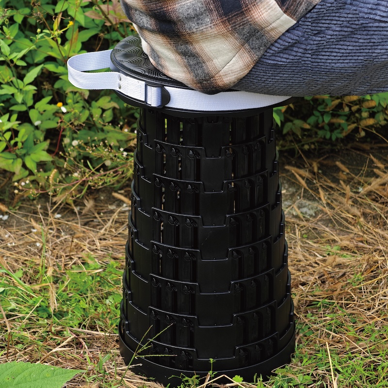 ◯クッション性があるのでお尻が痛くなりにくい – よくある折りたたみスツールと違い座面は高反発のクッションを採用。長時間座っていてもお尻が痛くなりにくい設計です。