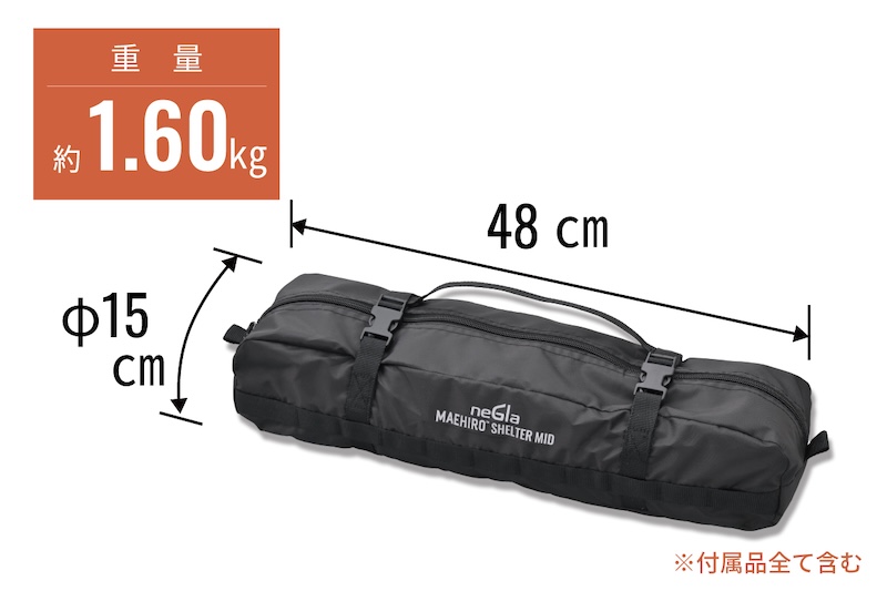 収納寸法:48×φ15cm 重量1.6kgと軽量コンパクト。荷物を少なくしたいツーリングキャンパーにおすすめです。