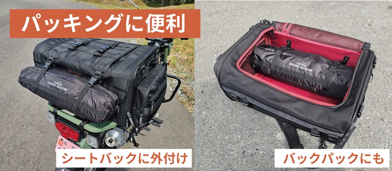 パルステープつきでパッキング性に優れツーリングにピッタリです。