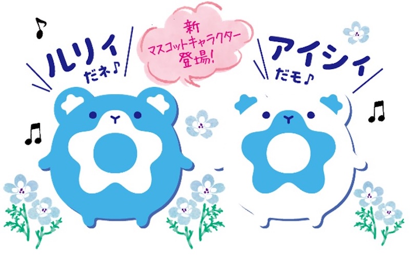 ネモフィラとあわせておすすめしたいのが、春のネモフィラグッズ。ネモフィラをモチーフにしたマスコットキャラクター「ルリィ」と「アイシィ」のグッズが、昨年に続いて次々と登場しています。
