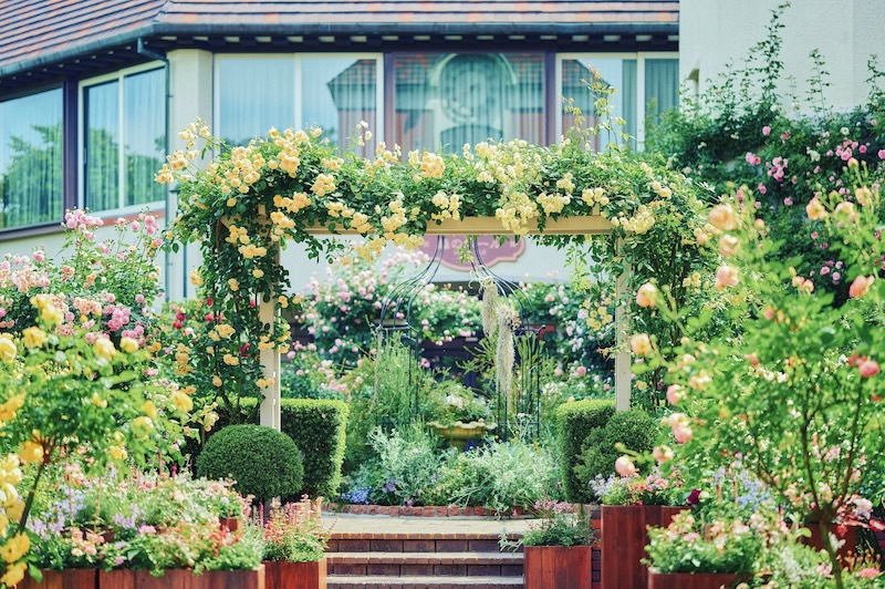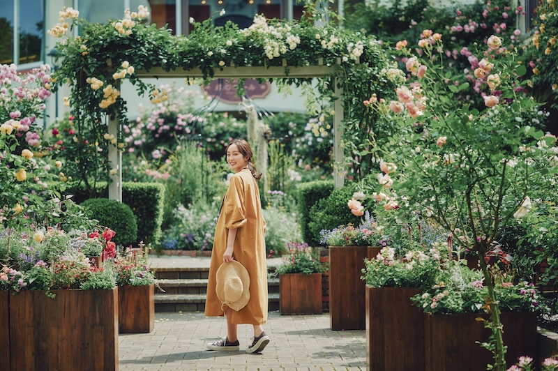 香り良く花色豊かなイングリッシュローズを中心に、6つのエリア(ミルラ香、ティー香、ノアゼット香、ムスク香、フルーツ香、オールドローズ香)に分類し植栽しています。ローズに囲まれたフォトジェニックなガーデンとして人気です