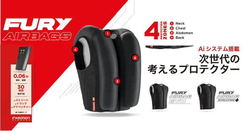 Furyganの最新エアバッグシステムは、これまでにない「軽さ・快適さ・知能化」を実現し、あらゆる ライダーにとって新たな安全のスタンダードとなる製品です。 お取扱店様情報等の詳細は公式サイトをご確認ください。