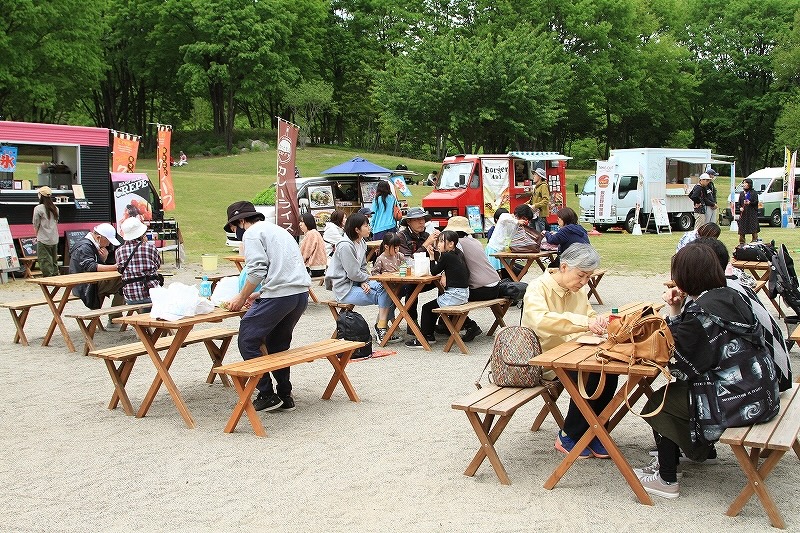 県内外のグルメを味わえる「あづみのキッチンカー広場」に約10店舗の多彩なキッチンカーが勢ぞろい。残雪の餓鬼岳と新緑を眺めながらピクニック気分をお楽しみいただけます。加えて、「フリーマーケット」や 「パフォーマンスステージ」、各種体験イベントを開催。食と遊びが詰まったイベントは見どころ満載です。