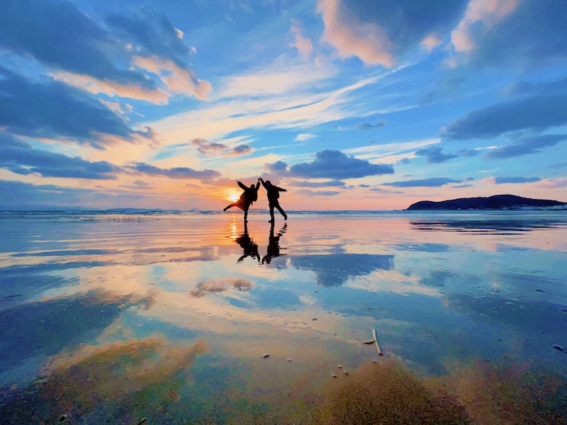 また、フェア期間中は潮が大きく引く日が多いシーズンで、SNSなどで注目を集める「かがみの海」の絶景撮影にぴったりのタイミング。大潮〜中潮の干潮時にだけ見られるリフレクションでは、濡れた砂浜に空が映り込み、幻想的な写真を撮影することができます。「かがみの海」は潮の満ち引きがポイント。お出かけ前には、公式HPの予想カレンダーをぜひチェックしてみてください。