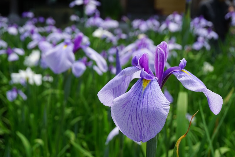 約100種10万株の菖蒲が紫や白の優美な花を咲かせ、境内を彩ります。また、期間中は夜9時まで、ライトアップされた社殿と菖蒲の幻想的な世界を楽しめます。