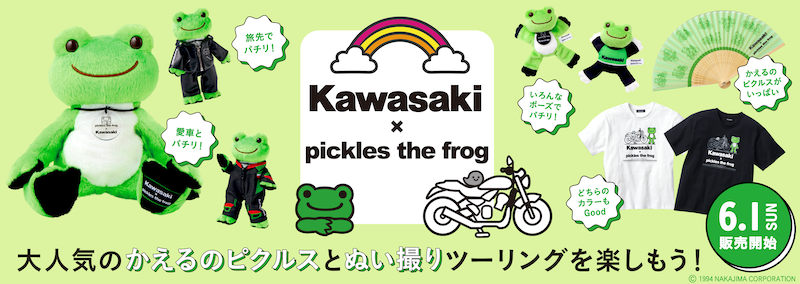株式会社カワサキモータースジャパンは、株式会社ナカジマコーポレーション(代表取締役:伊川慎一)のオリジナルキャラクター「かえるのピクルス」とのコラボ商品を2025年6月1日(日)より全国のカワサキ プラザで販売開始することをお知らせいたします。