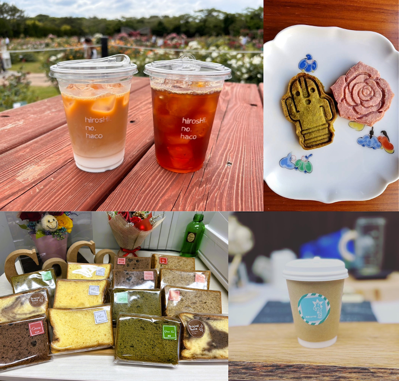 バラ園に地元福岡のコーヒーショップが登場! バラの香りに包まれながらゆっくりとコーヒー やスイーツをお楽しみください。