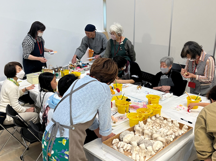 にぎわい交流館AUでは、県内各地の魅力的なお店や作家によるクラフト市のほか、八橋人形や川連漆器など秋田県内各市町村の伝統工芸や作家の作品作りを体験できます。