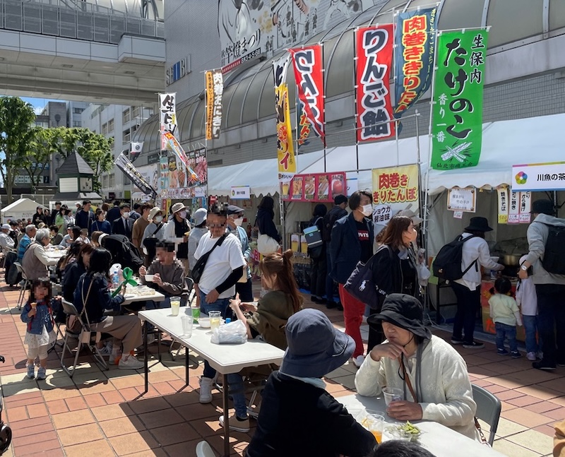横手やきそばや比内地鶏串、ババヘラアイスなど郷土料理や県産食材を使ったグルメ屋台がお出迎え。会場には椅子に座ってゆっくりとグルメを堪能できる飲食スペースを多数設置しており、毎年多くの来場者で賑わう人気のエリアです。