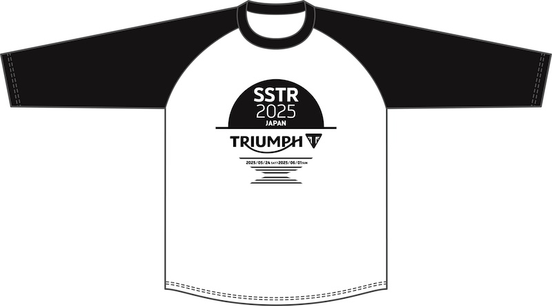 上記の①と②の両方のミッションをクリアされた方を対象として限定の「トライアンフオリジナル SSTR記念 ラグランロングスリーブTシャツ」をお渡しいたします。※無償提供、数やサイズに限りがございます。お電話での取り置き等にはご対応出来ませんので予めご了承ください。