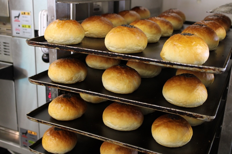十勝産小豆の粒あんを使用し、ぎゅうひ餅と一緒に包み込んだ、まるでお饅頭のようなあんぱんです(1個270円)。”はみ出すほど具たっぷり”にこだわっているため、繊細な包む工程はすべて手作業。多い日には800個を超えるあんぱんを、職人の手で一つ一つ丁寧に包み込み、焼き上げています。