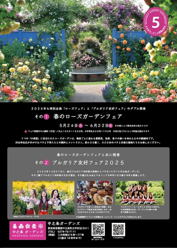 また、バラ・温泉と共通点も多いブルガリアと中之条町の文化の交流と友好関係を象徴する「ブルガリア友好フェア」も同時に開催いたします。