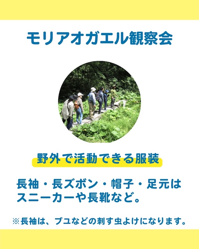 ・ モリアオガエル観察会:①10:30〜12:00 ②13:30〜15:00