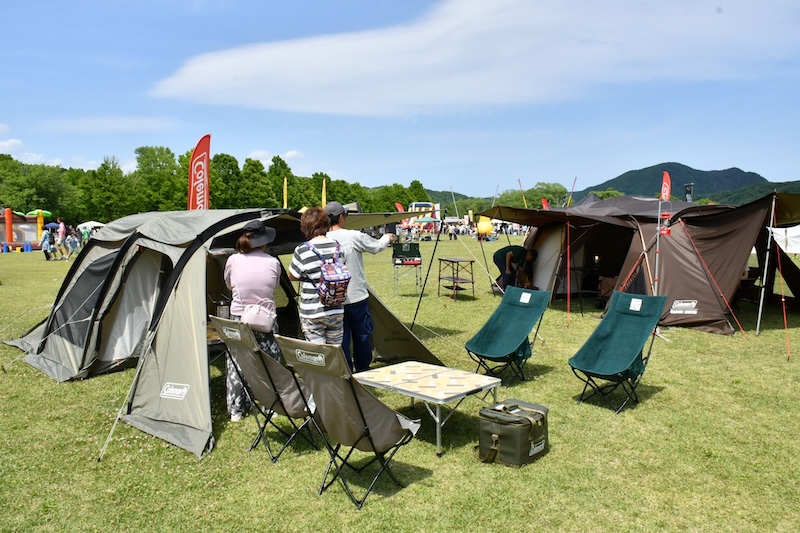 テントやキャンプグッズなどのアウトドア用品の展示・販売をはじめ、カヤックやツリーイングなど多彩なアクティビティ、親子で楽しめるワークショップ、地元の食材を使用したグルメを提供するキッチンカーなど、合計70店舗以上が出展予定となっています。