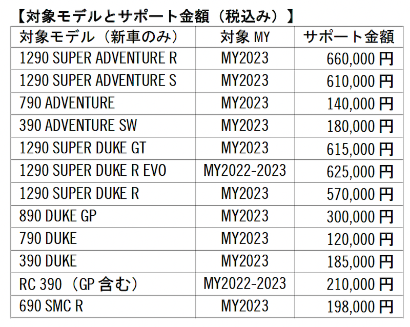 KTM Japan株式会社、新規ご購入やお買い替えをサポートする『ライダーサポートキャンペーン』を実施します。