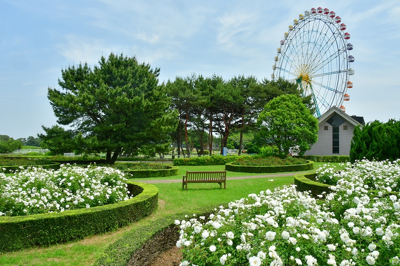 国営ひたち海浜公園は、茨城県ひたちなか市の太平洋岸にあり、春のネモフィラ、スイセン、チューリップ、初夏にはポピーやバラ、夏のジニア、ヒマワリ、秋にはコキア、コスモス、冬のアイスチューリップなど、彩り豊な花々が四季を通じて楽しめます。また、海抜100mからの眺望を楽しめる大観覧車をはじめ、ジェットコースターなど多彩なアトラクションが揃う遊園地「プレジャーガーデン」のほか、林間アスレチック広場やバーベキュー広場など、食事・スポーツ・ピクニック・・・遊び方は十人十色。魅力いっぱいの公園で、思い思いの時間をお過ごしください。