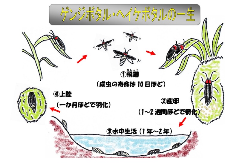 特別展示「ホタルの杜」では、当館の飼育スタッフが1年かけて繁殖・育成した「ゲンジボタル」、「ヘイケボタル」を約50匹展示いたします。