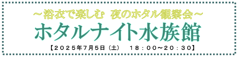 2025年7月5日(土)の閉館後、「ホタルの杜」の開催に際して、ホタルの生態についてさらに詳しく、楽しく学べるナイトイベント「ホタルナイト水族館」を開催いたします。