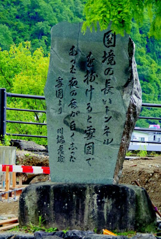 「雪国」の有名な冒頭の一節が刻まれた「雪国の碑」