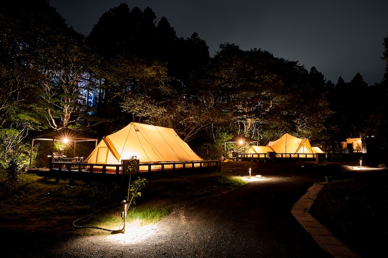 五浦 幽谷隠田跡温泉は、茨城県北茨城市の豊かな自然に囲まれたロケーションと、チームラボによる光のアートの融合による非日常体験を提供するグランピング施設として、2024年9月30日(月)に開業しました。