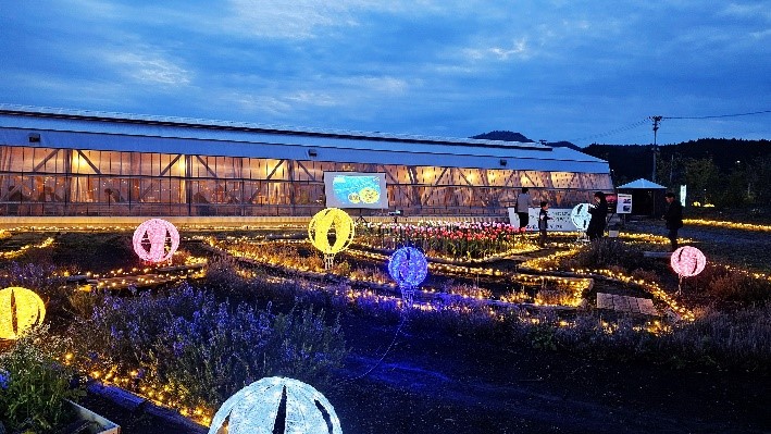 ワタミ株式会社子会社であるワタミオーガニックランド株式会社が運営する陸前高田ワタミオーガニックランドにて、この度7万球以上のLEDを設置し、5月3日に「うみともりとたいようのイルミネーション」の点灯式を開催しました。