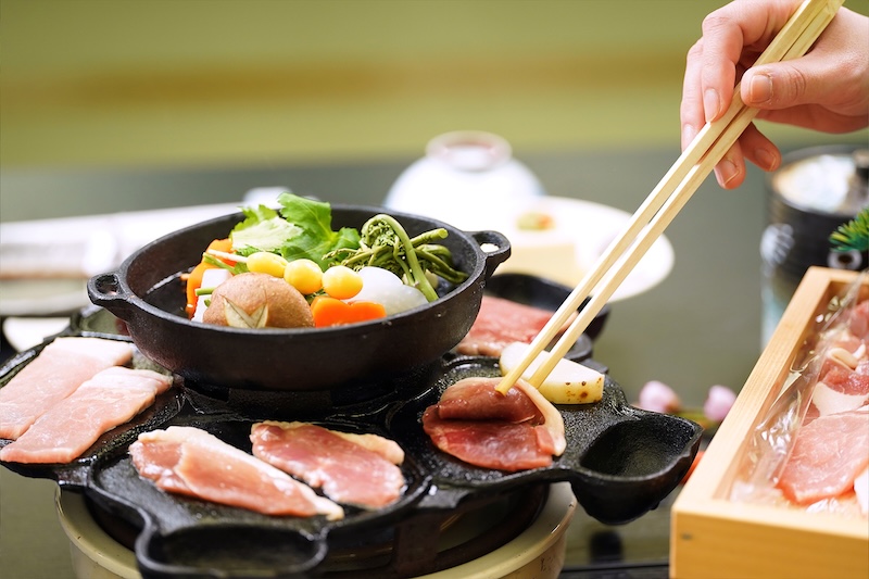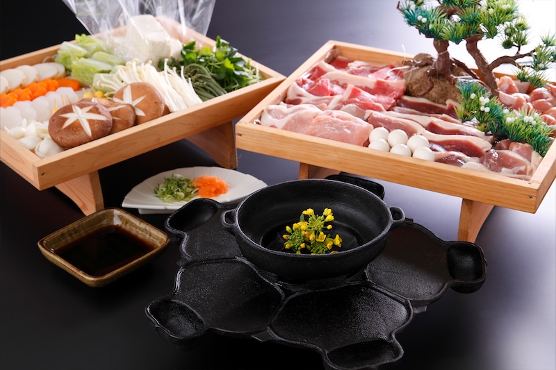 ②夕食:名物「義経鍋」スタンダードコース(3日前までのご連絡でヤマトポーク付き会席に変更可能/18:00~20:00)