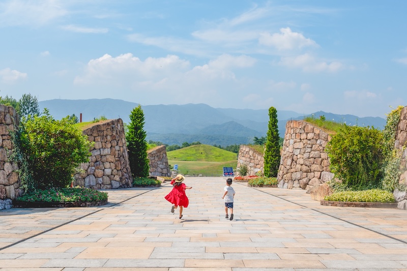 高低差のある地形を活かして、上から眺めても良し、下から眺めても良し…