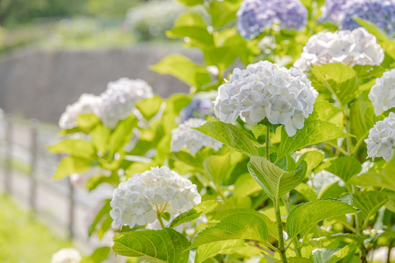 あじさいを代表するてまり咲きから豪華な八重咲きの品種、ガクアジサイをはじめとした野趣あふれる系統まで、そのバリエーションの豊かさにきっと驚くはず。
