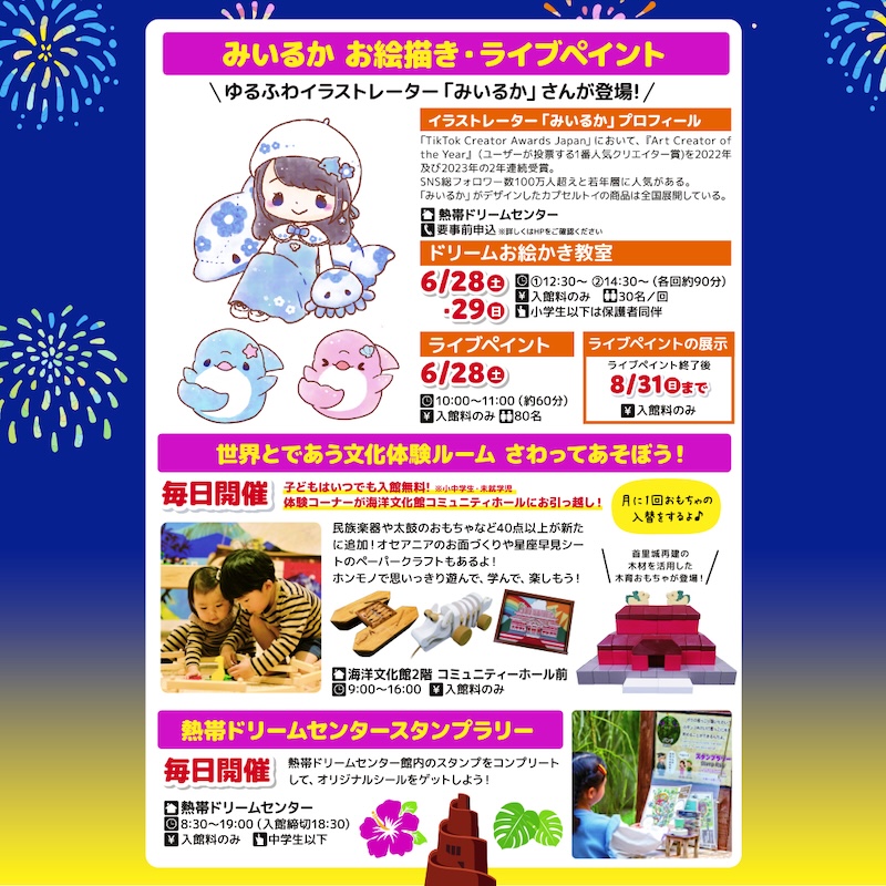 熱帯ドリームセンターにてお絵描き教室やライブペイントなどを開催(要事前申込)
