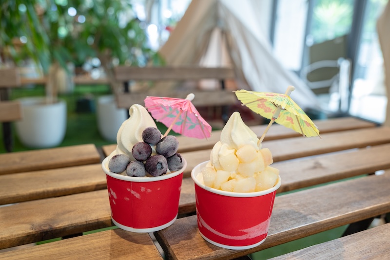 期間中、園内では各店舗限定のアジサイに関連したスイーツをご用意しています。園内のアジサイと一緒にお楽しみください。