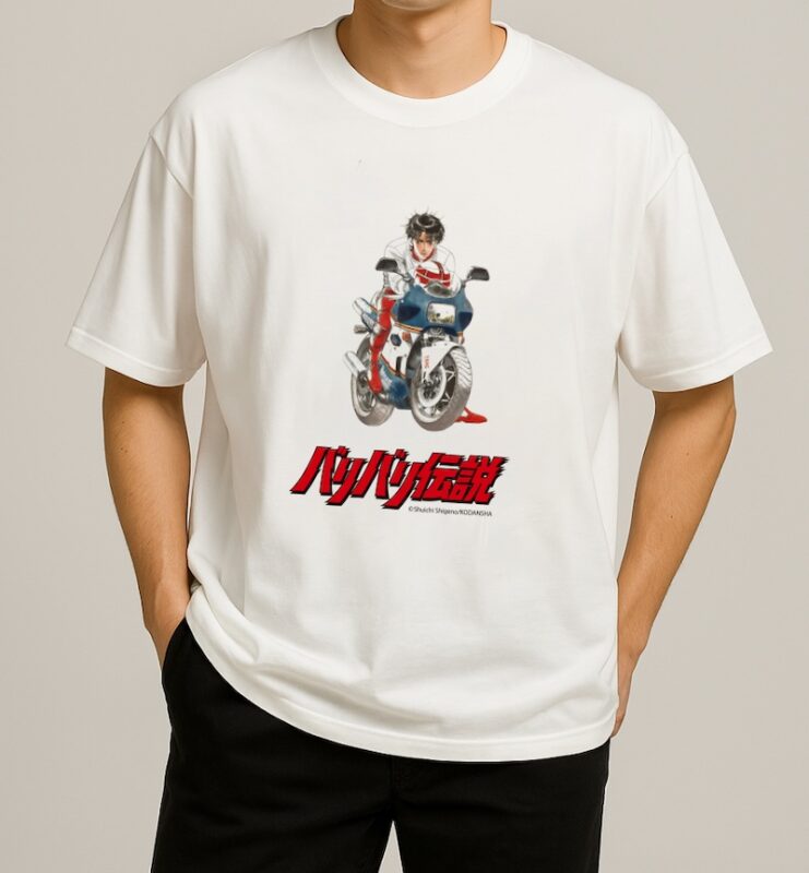 1980年代、バイクに情熱を注ぐ若者たちを魅了し、今なお語り継がれる伝説のバイク漫画『バリバリ伝説』がグラフィックTシャツとして蘇ります。