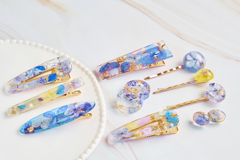雨粒のように澄んだレジンに、プリザーブドフラワーを閉じ込めたオリジナルアクセサリー作り体験です。自分へのご褒美にはもちろん、大切な人への心を込めた贈り物にもぴったりです。雨の日にだけ出会える、特別なひとときをぜひご堪能ください。