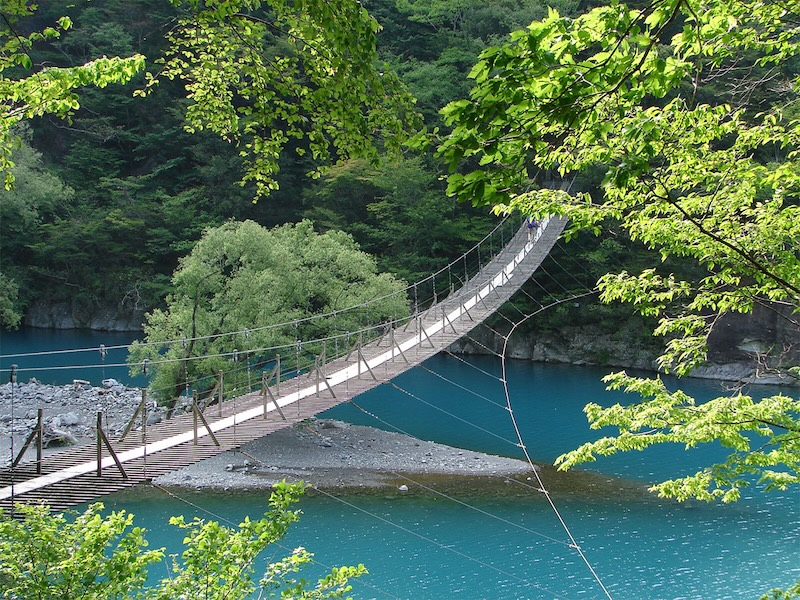 峡谷・寸又峡にあるつり橋。橋の下には神秘的なエメラルドグリーンの湖が広がり、周囲の自然とのコントラストが映えるフォトスポットです。「夢のつり橋」を経由する「寸又峡プロムナードコース」は、1 周約90分の散策コースで、季節の花木を眺めながらリフレッシュできます。混雑を避けるなら、早朝から午前中の散策がおすすめ。※寸又峡プロムナードコース入場ゲート通行時間:7時~17時(最終入場16時)※※季節・天候により、延長または短縮する場合があります