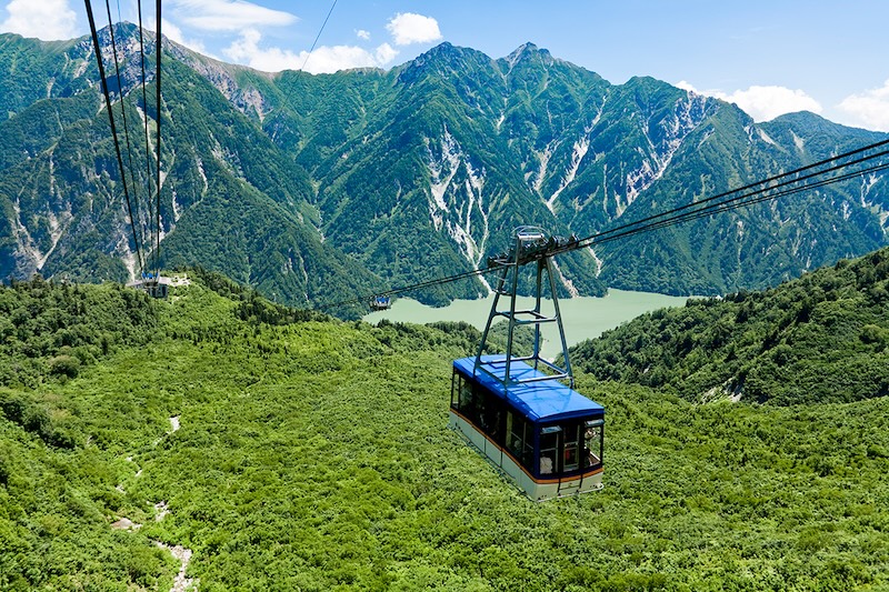立山黒部の雄大な自然を眼下に空中散歩が楽しめる「立山ロープウェイ」は“動く展望台”とも称されています。景観と環境保全の観点から、間に一本も支柱を立てずワイヤーのみで客車を運ぶ“ワンスパンロープウェイ”としては日本最長といわれ、360度の大パノラマを見下ろしながら、季節ごとの絶景を堪能できます。