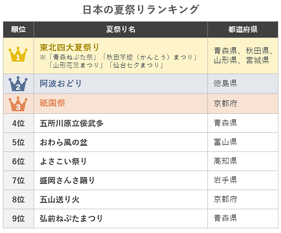 参考(前回の調査):日本の夏祭りランキング! 東北四大夏祭りが1位で、2位はどこ?~阪急交通社の2023年のツアー申込者数を集計~