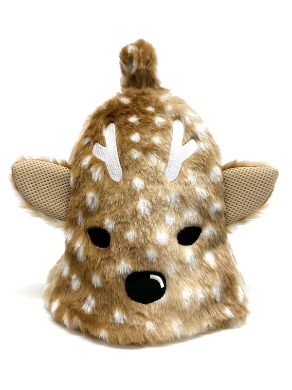 小鹿をイメージしたバンビ柄のフェイクファー生地は耐熱性や遮熱性に優れ、かつ洗濯機での丸洗いも可能と、見た目の可愛らしさだけでなく高い機能性を発揮します。また内側にはベストサウナハットの特徴でもあるメッシュが施されています。